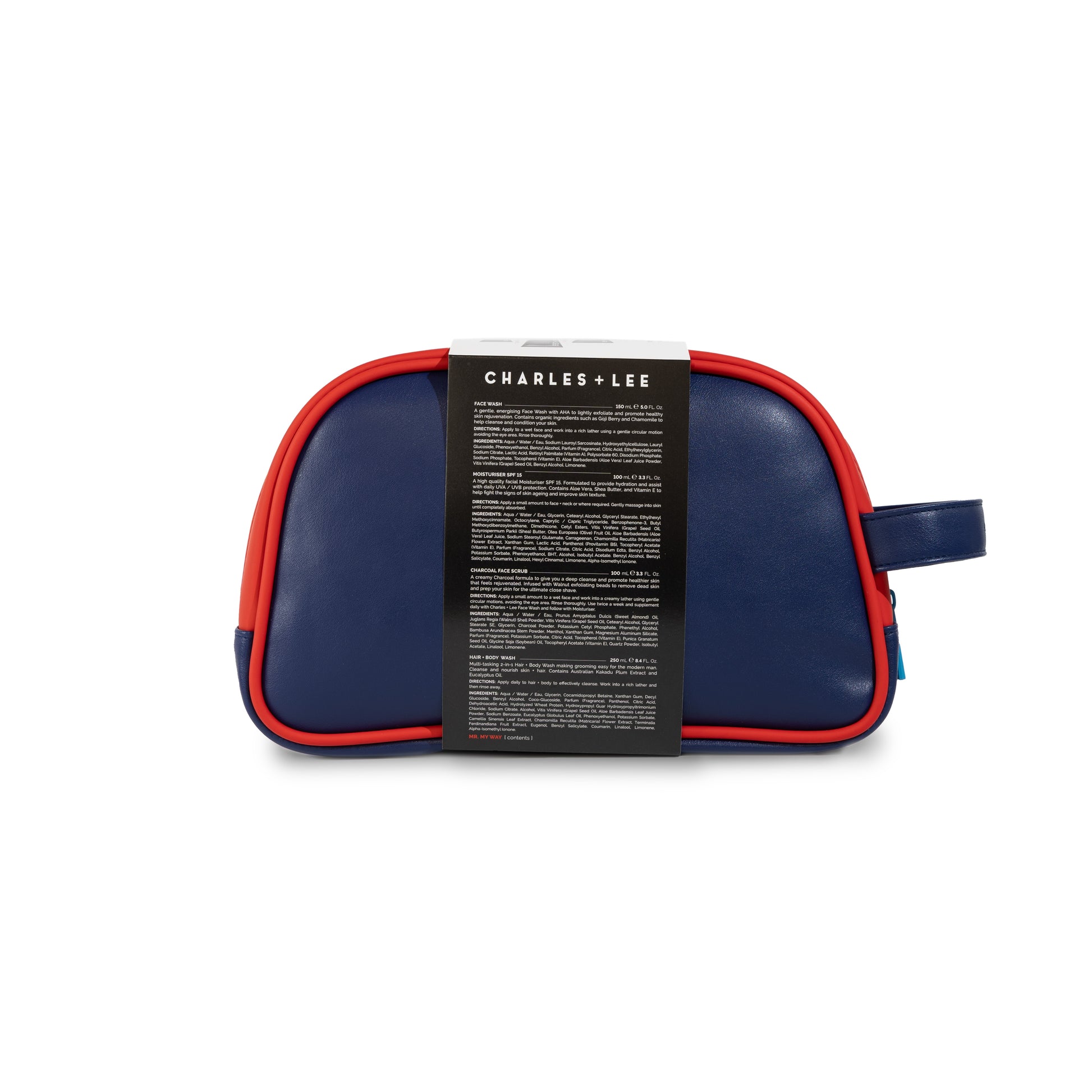 Hair + Body Wash: Aqua / Water / Eau, Glycerin, Cocamidopropyl Betaine, Xanthan Gum, Decyl Glucoside, Benzyl Alcohol, Coco-Glucoside, Parfum (Fragrance), Panthenol, Citric Acid, Dehydroacetic Acid, Hydrolyzed Wheat Protein, Hydroxypropyl Guar Hydroxypropyltrimonium Chloride, Sodium Citrate, Alcohol, Vitis Vinifera (Grape) Seed Oil, Aloe Barbadensis Leaf Juice Powder, Sodium Benzoate, Phenoxyethanol, Potassium Sorbate, Camellia Sinensis Leaf Extract, Chamomilla Recutita (Matricaria) Flower Extract, Terminalia Ferdinandiana Fruit Extract.